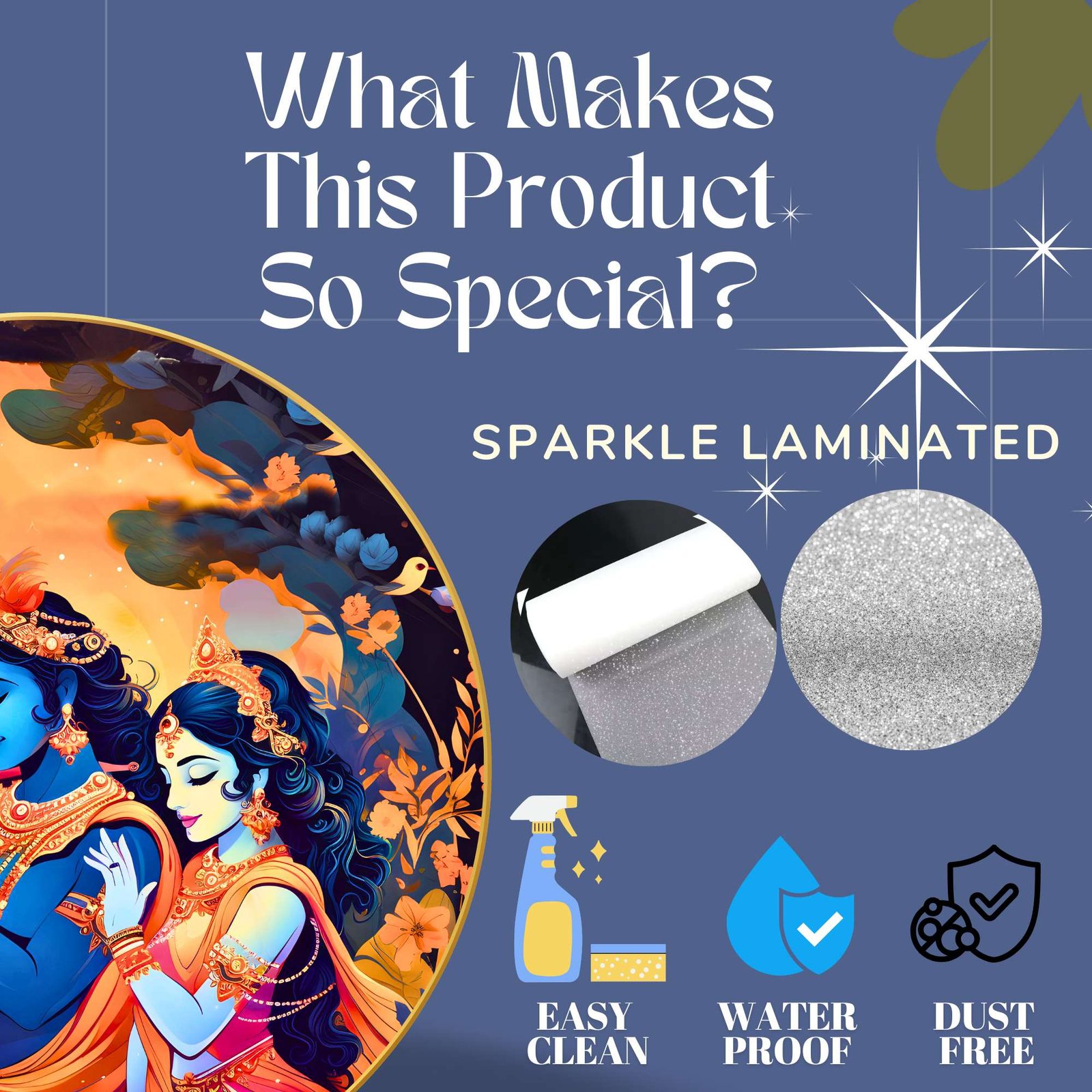 This Golden Round Frame painting with frame is made with high-gloss photo paper, featuring a unique glossy sparkle laminate that enhances the vibrancy and details of the artwork. Whether you are looking for a wall painting for living room or a wall painting for bedroom, this piece will add a touch of divinity and grace to any space. The high-quality finish ensures that this painting for wall decoration stands out.This Golden Round Frame painting big size is designed to fit seamlessly into your home decor, whether you are looking to enhance wall decor for bedroom or create an ambiance of peace in your living room. It is not just a Krishna Radha painting frame but also a meaningful symbol of love and devotion, making it one of the finest