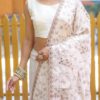 Drape yourself in luxury with this Pure Soft Silk Saree, exquisitely adorned with beautiful thread handwork. It showcases an elegant floral design complemented by a sophisticated cutwork border, creating a harmonious and graceful look. The saree features this elegant design meticulously spread all over, ensuring a stunning appearance. This timeless piece, perfect for any special occasion, is available for ₹4,899.00.